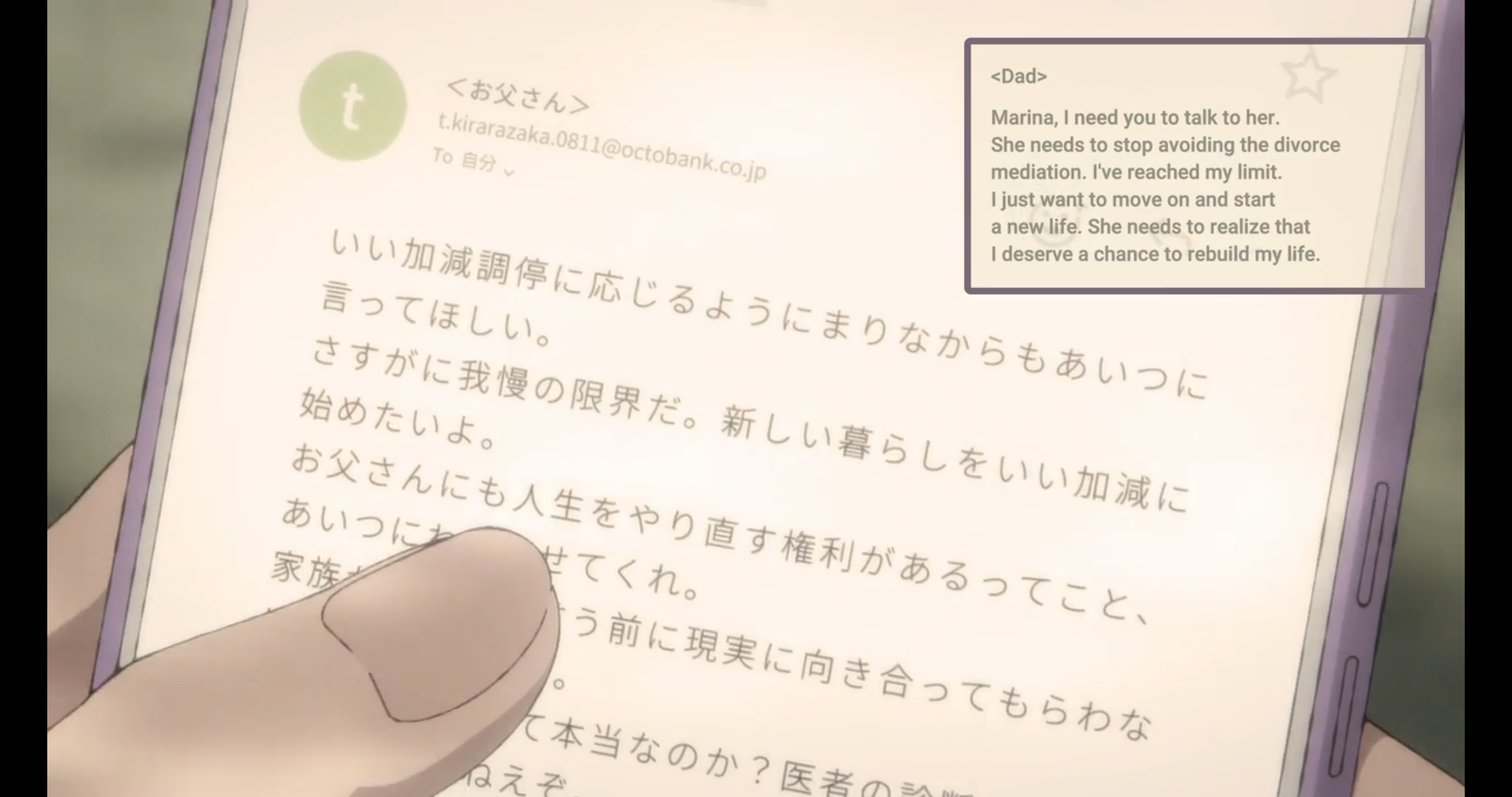 However, being bullied in school, her mom not caring about her, and losing her best friend (chappy), that would make anyone snap. She had no-one on her side growing up, while Marina at least had a good school life. Had chappy not been killed, I feel like Shizuka would've turned quite fine herself, once she graduated shougakkou.Really excited for the finale, I'm hoping it ends with a 40 minuter.