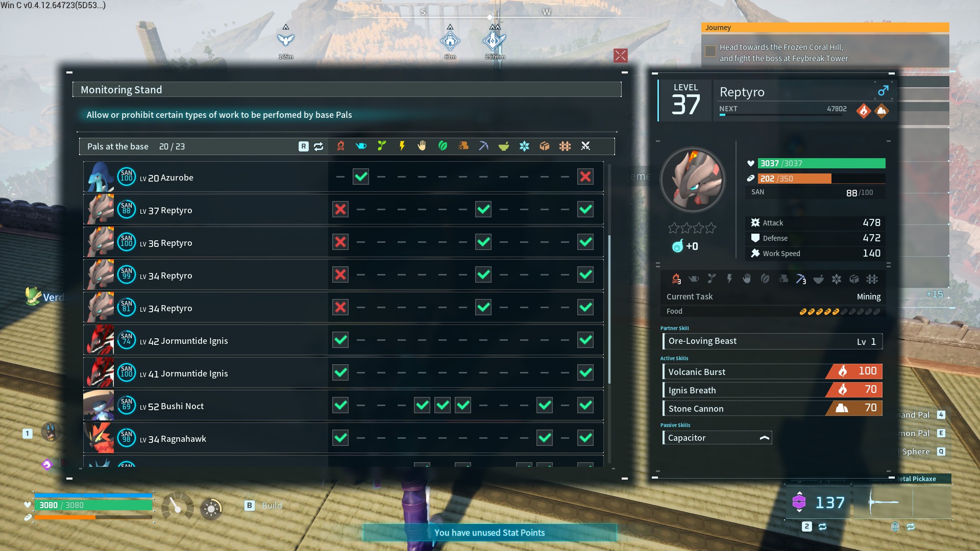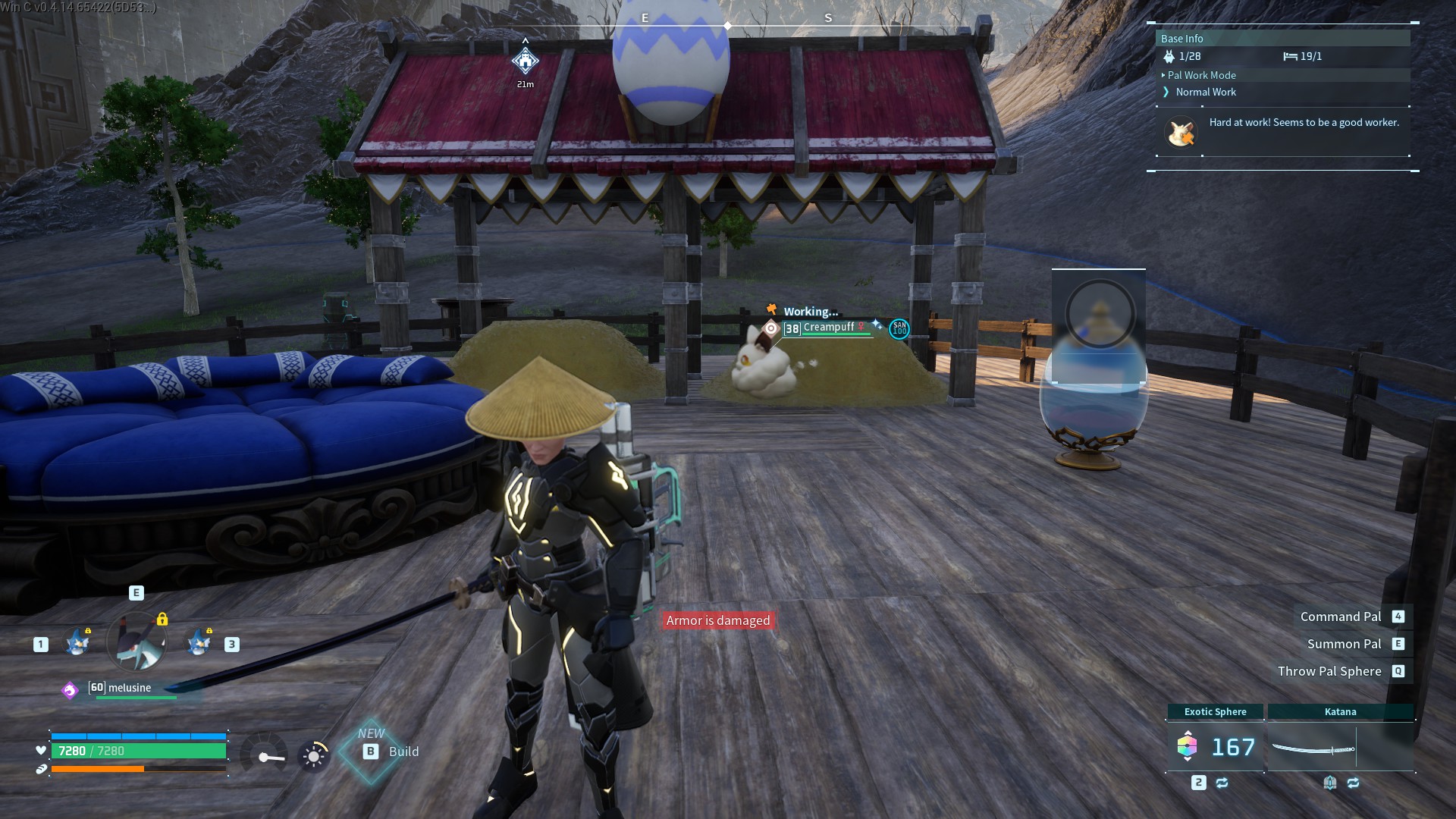 We last played in January and there's been some big patches since then. For those who don't know, it's a third person building/Pokemon capturing game. I think the term is "open world crafting survival" or something, but it's Japanese so it's cute and quirky. People called it "Pokemon with guns", which is kind of true for the atmosphere but it's more than that.