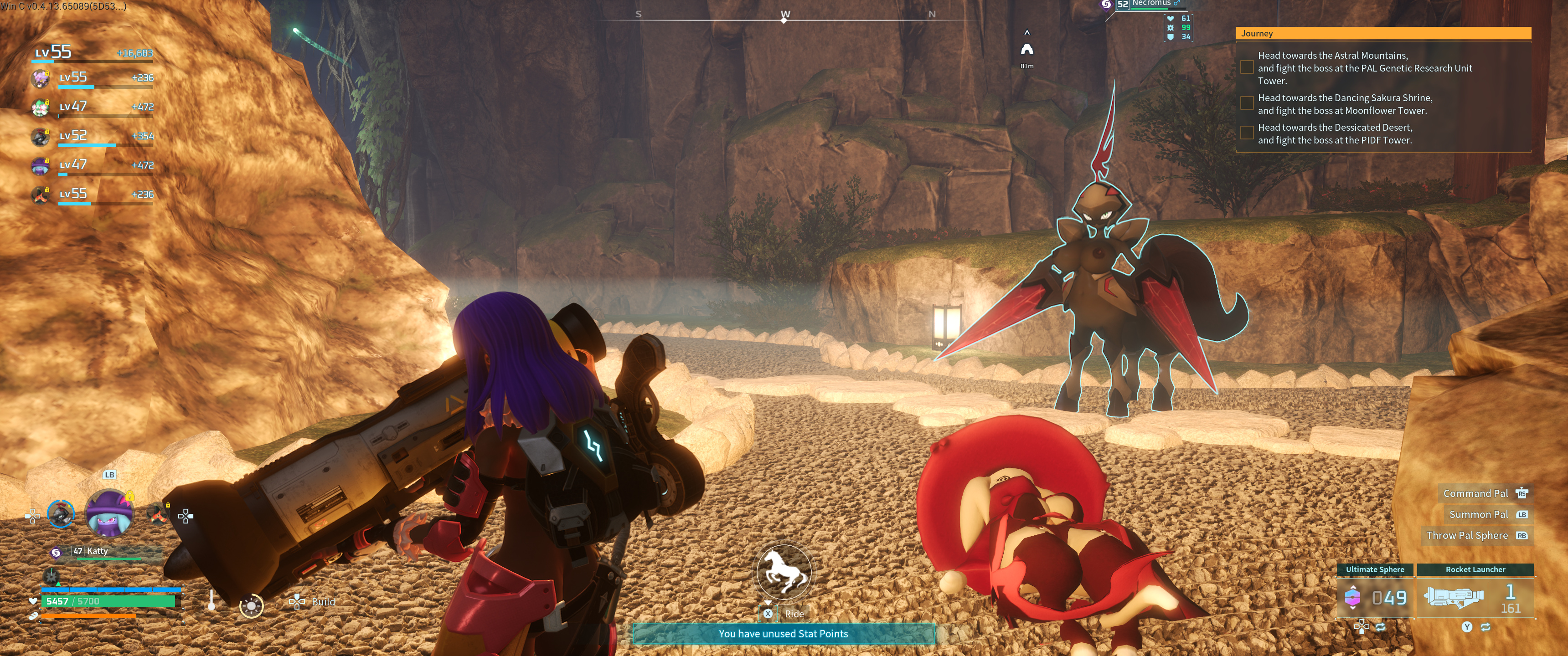 5. 4v4 (Player + 3 Pals) Ranked Arena against NPCs, Players are also there on the leaderboard so you can compete. Seems like it would take a while to to rise through the ranks. Has its own currency and unlocks.