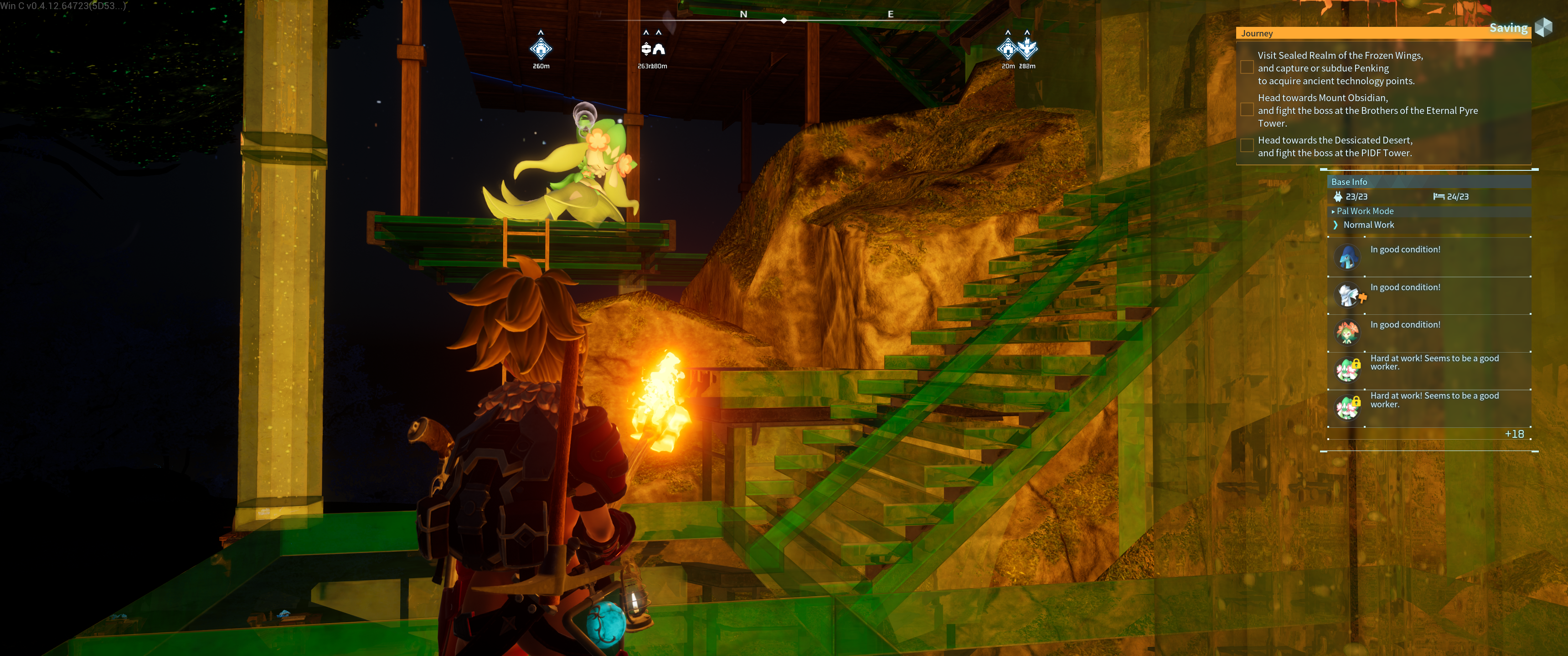 I am rebuilding my base in Glass, I also found this cool new pal called Tarantriss. She can be ridden but you can;t shoot form her, instead she has a web ability that acts like a grappling hook.