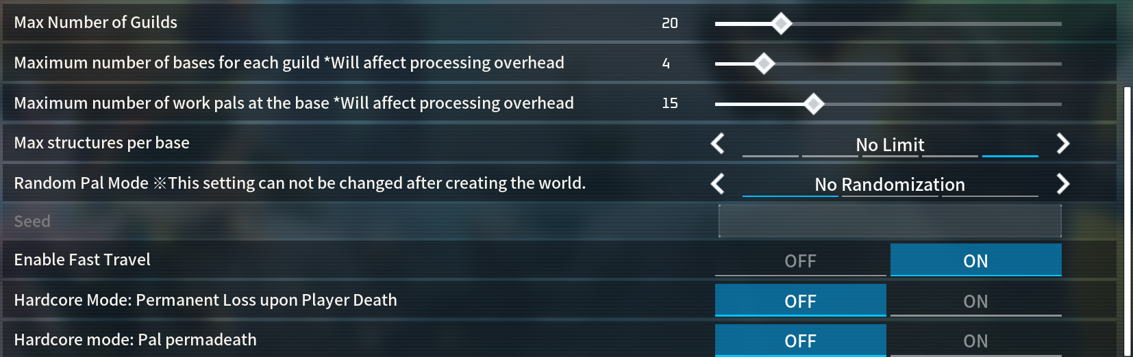 Also the default limit of 15 pals per base is nowhere near enough so I put it to the maximum of 50.