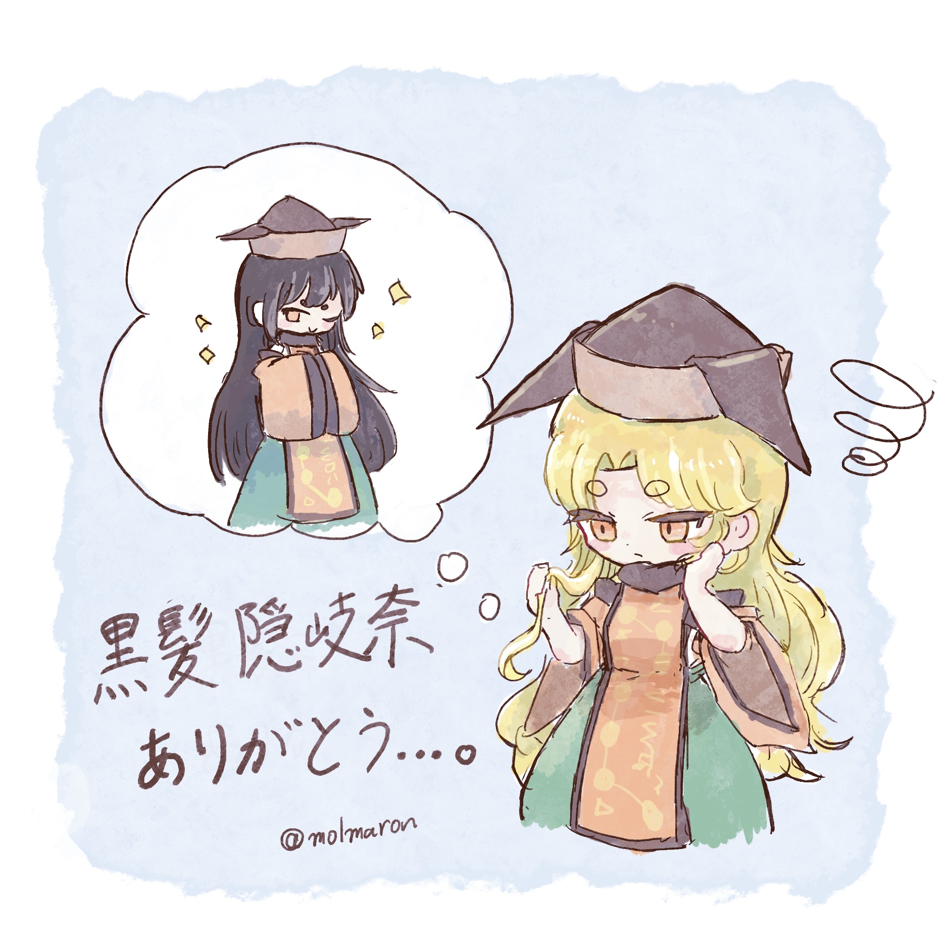 another bit of folklore with lamprey eel serving to cure night-blindness, which in turn has allowed ZUN to add to her character by turning her into an Izakaya-owner part-time. How popular do you think Mystia would be without her whole Izakaya gig? Still relatively popular, sure, but nowhere near as she is now. She'd be a lot duller as a character, that's for sure. I don't wanna drag this on too much but some other examples come to mind like Shou's Bishamonten origins playing into her running gag of constantly losing her pagoda (reference to how Bishamonten statues IRL suffer from the same issue), Shinmyoumaru's entire character, items and living place being a near 1:1 of the tale of Issun-bōshi, Junko's grudge against the moon being based on the chinese Zuo Zhuan and Heavenly Questions... so-on.