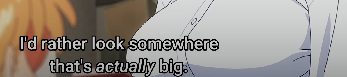 >>100600The thighs are there in the OP image at least, but she does have nice breasts. The show does an excellent job of teasing them just enough without showing anything other than a bit of cleavage once in a while.