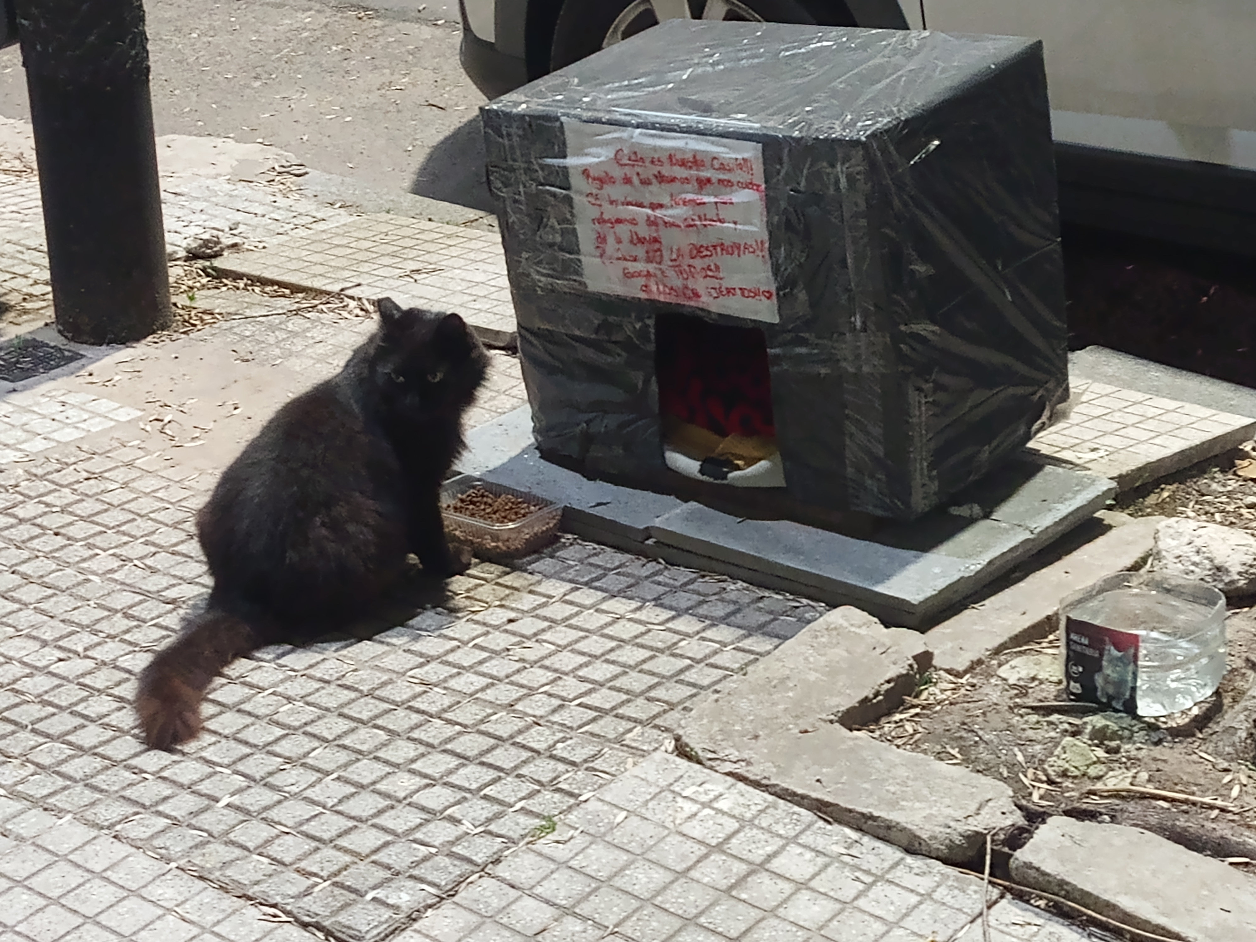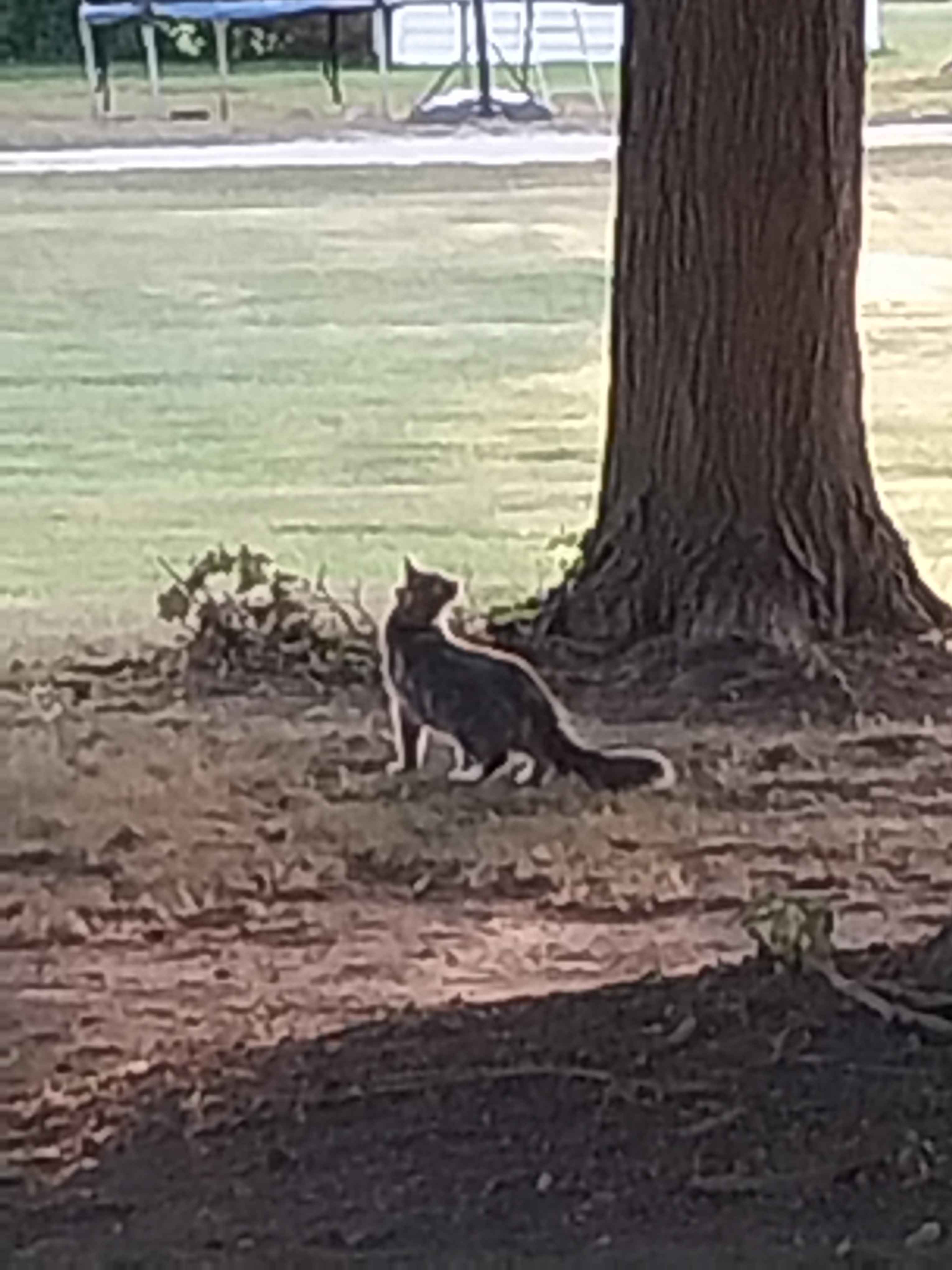 This one came up to me which was nice, really liked being pet and didn't mind being picked up to cuddle. Has a collar. Same cat here