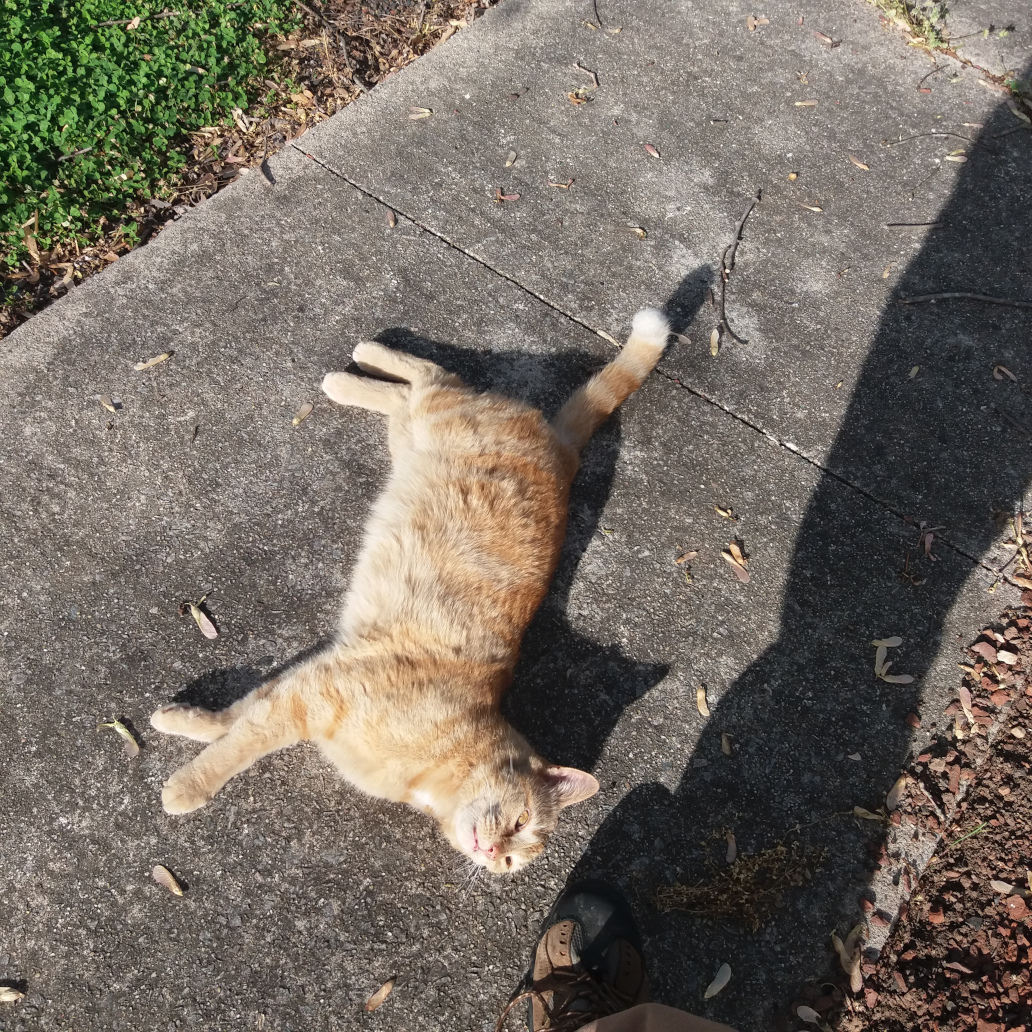 Cat lets me give belly rubs without scratching me after two pats. I am fully trusted by cat friend now it seems.