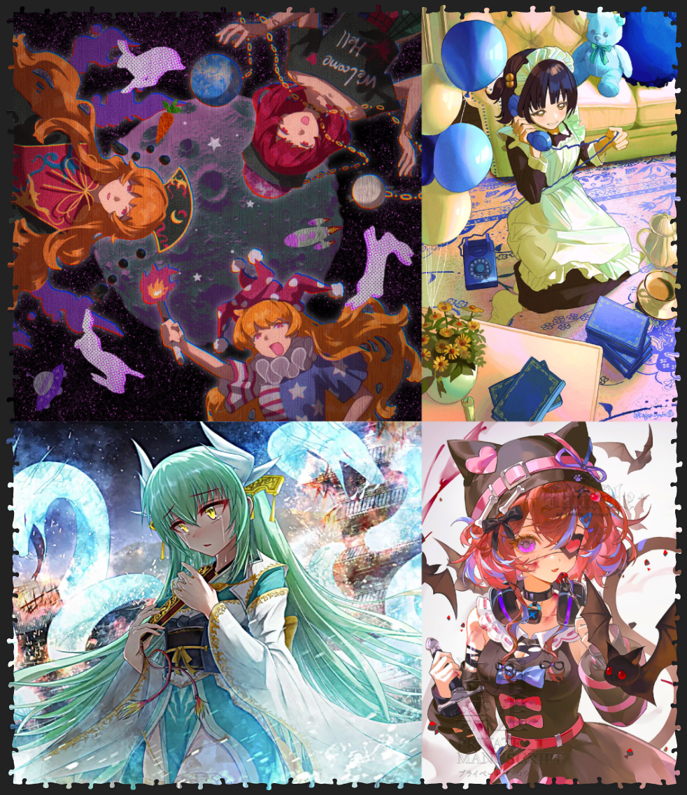>>165038Just adding a quick note. I noticed the image didn't load on my android phone for some unknown reason. Might've just been a weird bug, since it works on most other places i tried, but if you join and all pieces are gray, you might need to try on some other browser/phone.