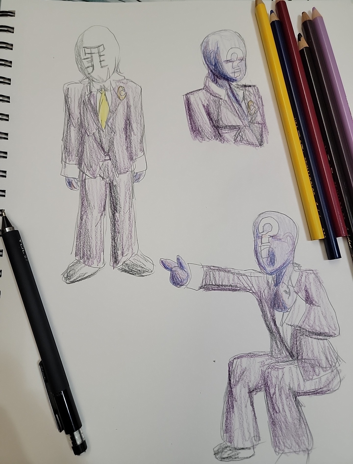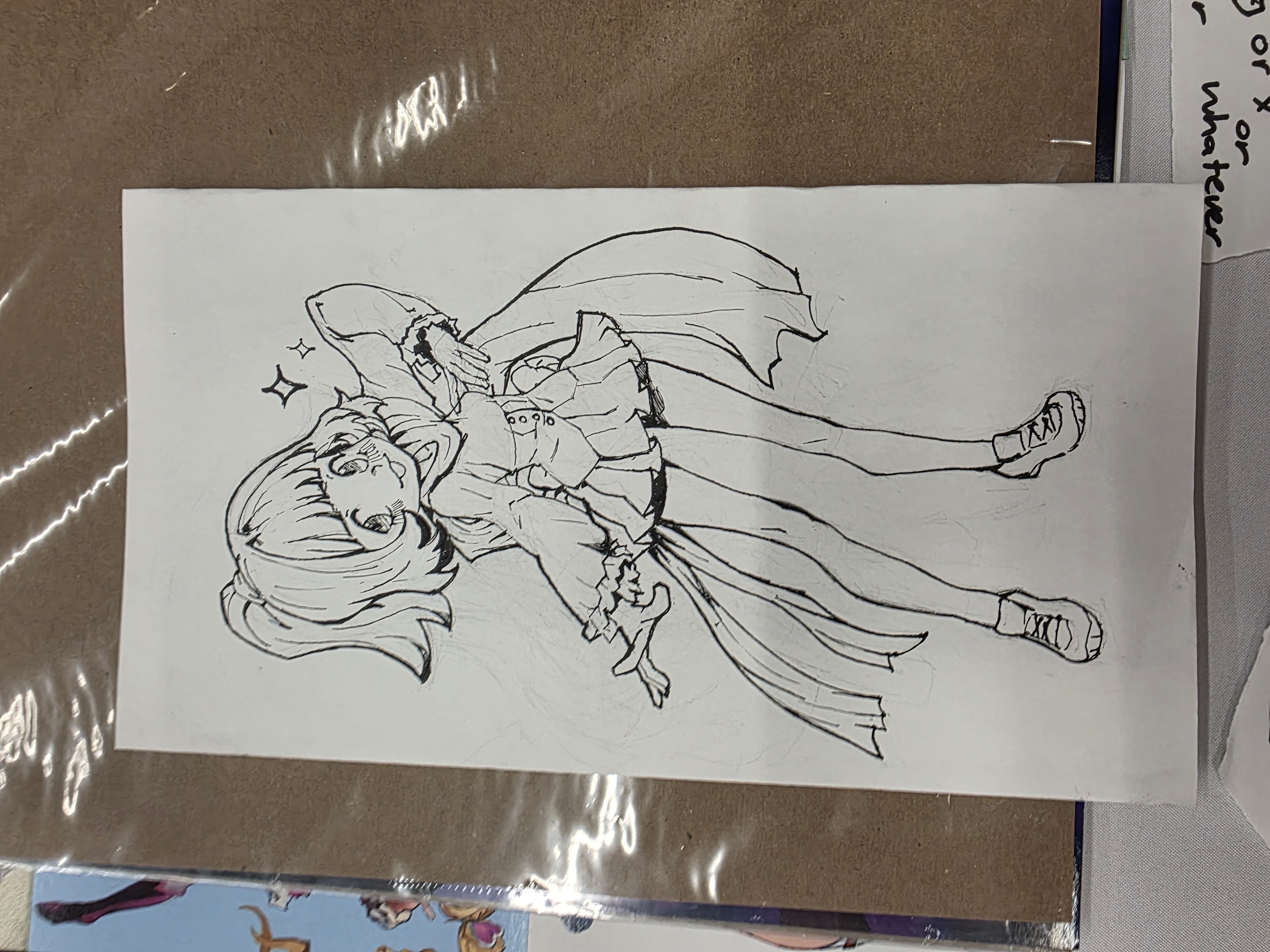 >>163265I eyeballed it. I had to play with the transform tool to bend and tilt the sketch into the right perspective that I felt worked, then adjust parts that were mis-sized like her arm with the crowbar