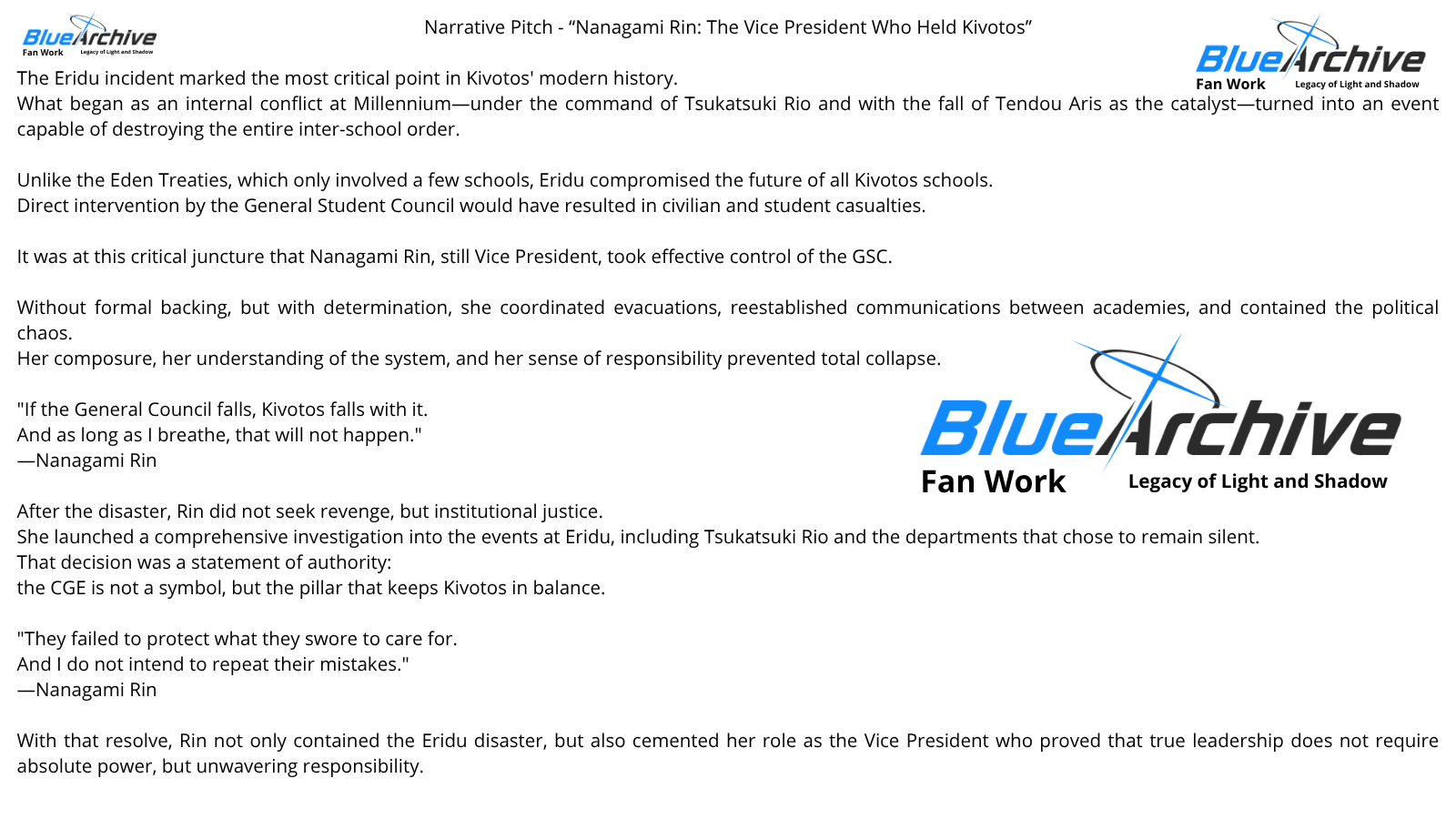 After months of work, I’ve finished Legacy of Light and Shadow, a full-scale lore expansion for Blue Archive: